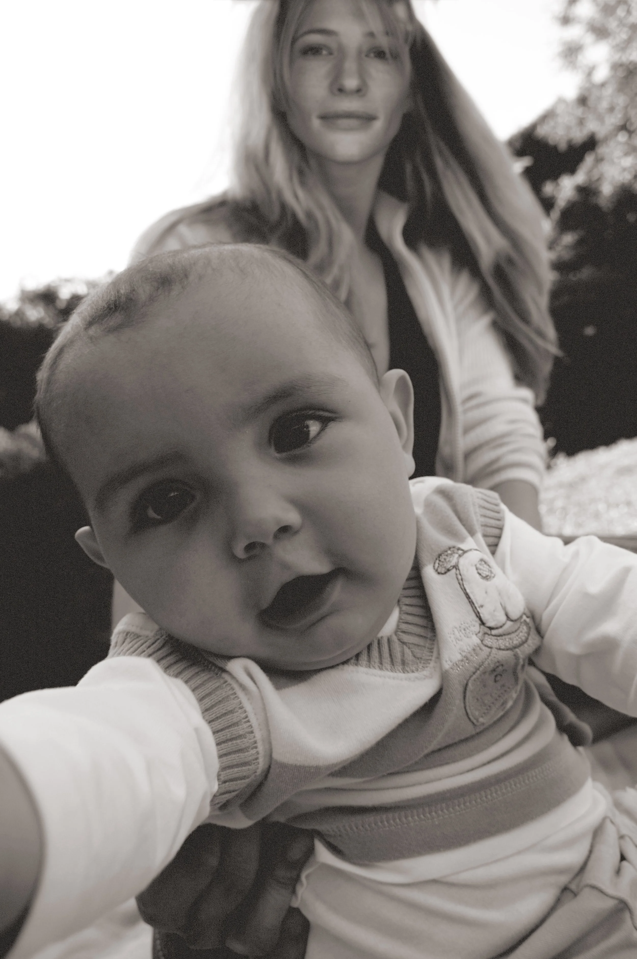 For the Ravenscrofts, the approach was more controlled and restrained. Working primarily with licensed stock imagery from Alamy and Getty, alongside approved photographs of Cate Blanchett, I created predominantly black-and-white images that felt curated and emotionally distant. These photographs, including images of Catherine with baby Nicholas, reflect the family’s more guarded, constructed public identity.
