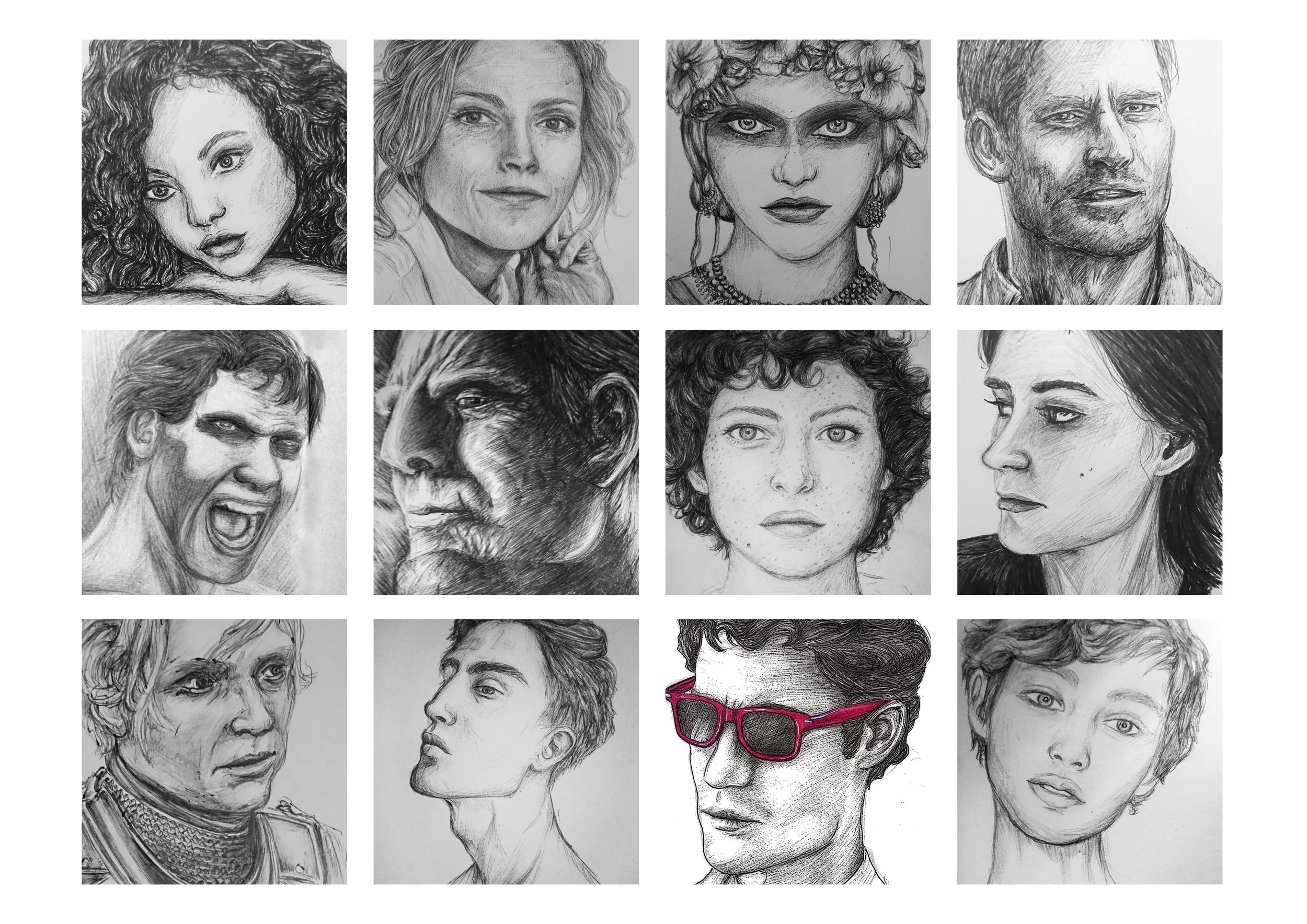 Even for my personal sketches, I prefer drawing in biro over pencil as it doesn’t smudge or soften over time. With its smooth ink flow, the biro allows for precise and detailed lines, or scratchy expressive shading, making it the perfect medium for capturing the intricacies of facial features. The monochromatic nature of the black ink adds a timeless quality to the portraits, emphasizing the shadows and highlights that define the subject's expression. Whether creating delicate fine lines or bold and energetic strokes, sketching portraits in biro offers a unique and captivating way to immortalize the essence of an individual on paper.